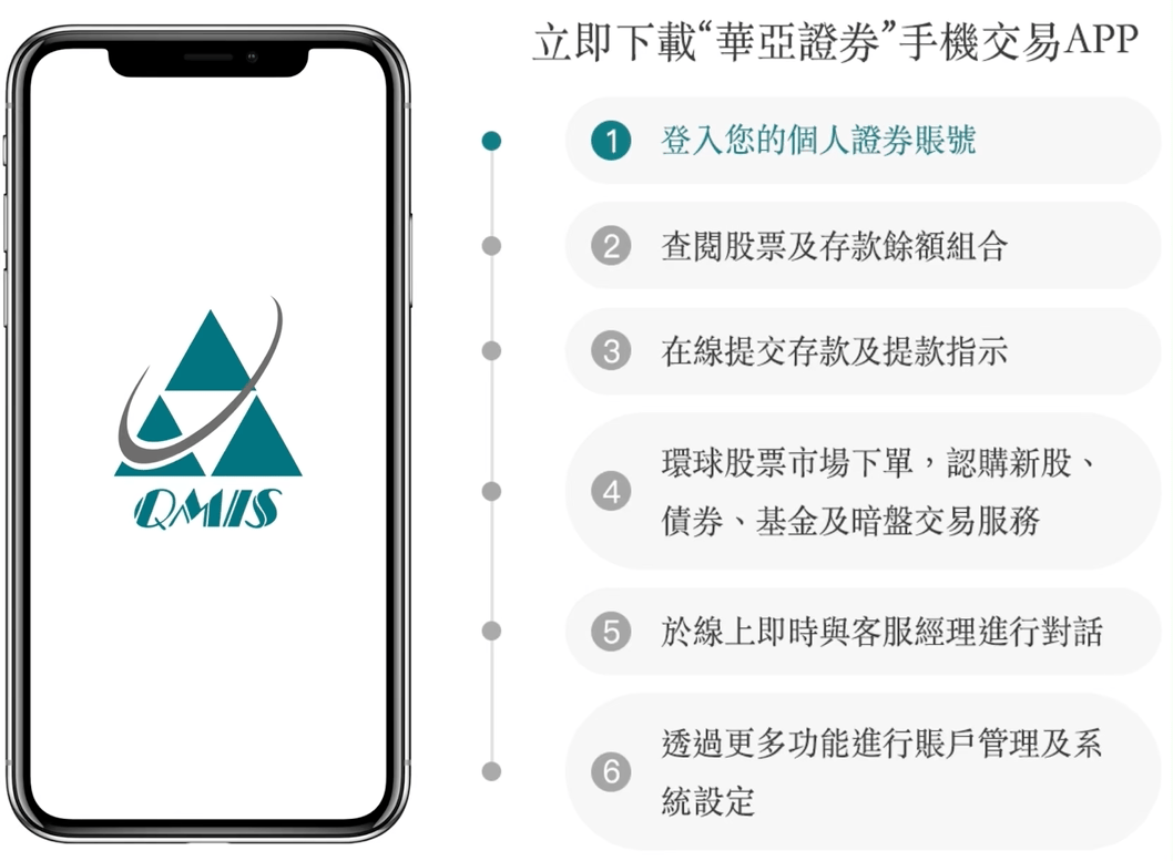 華亞證券推出全新「手機交易APP」流動交易平台服務,為投資者提供全面、安全穩定及便捷的投資服務。您可透過 iOS 系統手機於 App Store 免費下載程式,服務範圍包括線上開戶、環球股票交易、新股認購、債券及基金、款項提存及在線客服查詢等,讓您盡享全方位的交易投資機會。